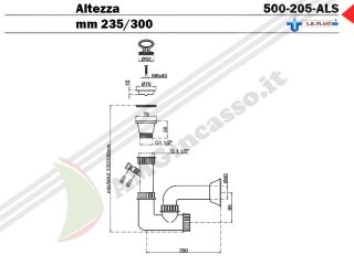 Piletta L.B.PLAST 500 Ø 70 tappo maniglia Ø 52 senza troppo pieno